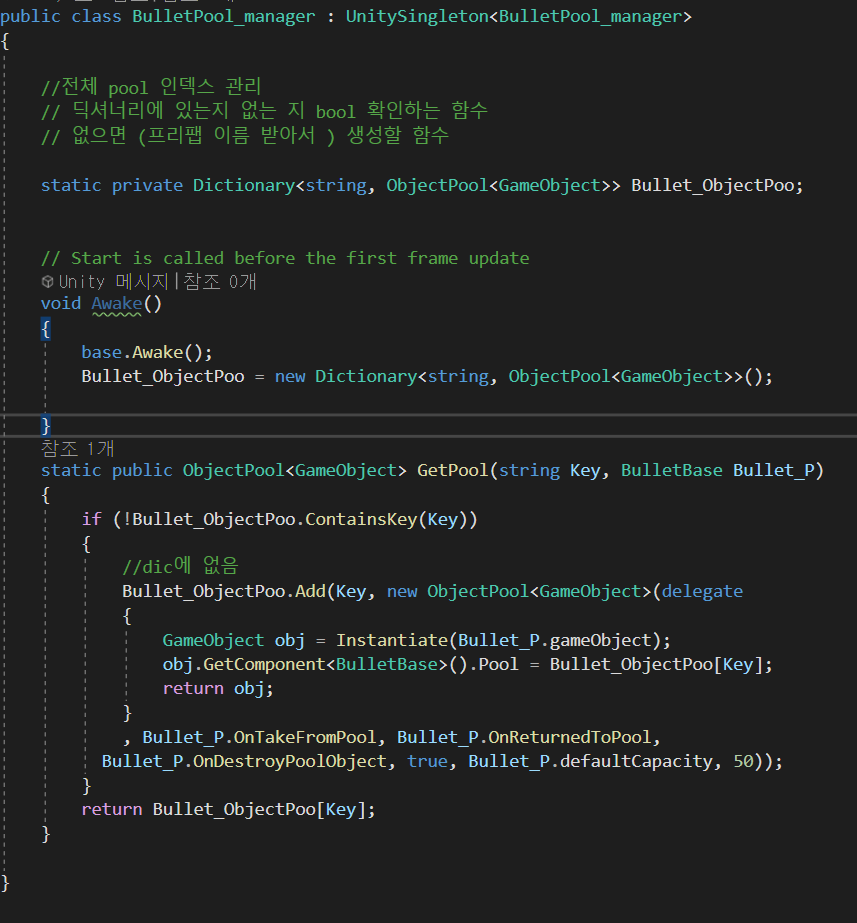 그리고 특정 상황마다 BulletSpawner 에서 Pool.Get();을 해준다.