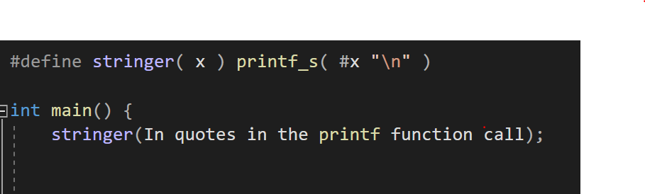 매크로 인수에서만 사용가능하며 인수를 작은따음표로 묶어 매크로가 확장될때 문자로 처리된다.