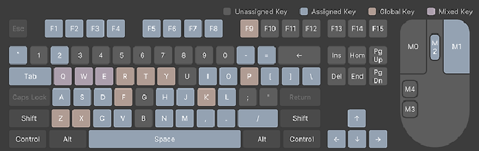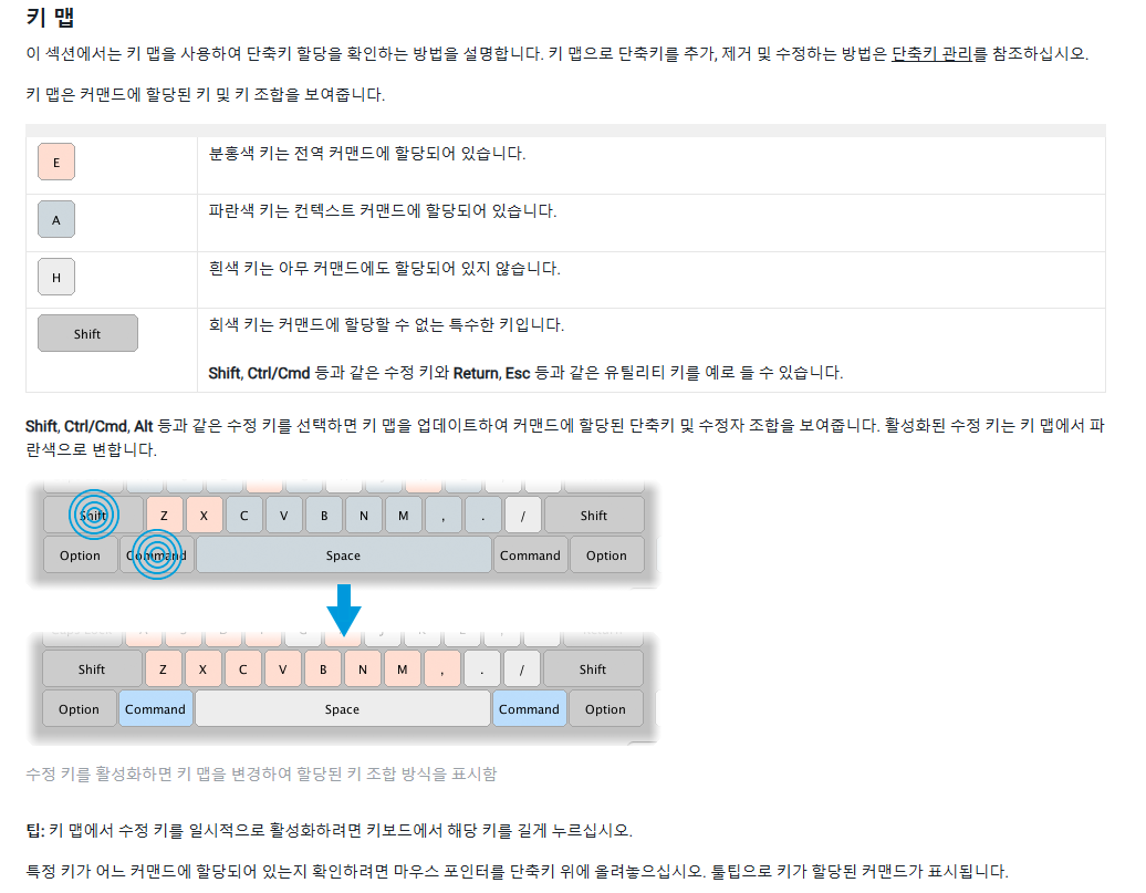 키에 마우스를 올리면 어떠한 단축키가 할당되어있는지 확인할수있다.
